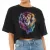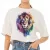Cool Lion Cropped T-Shirt – Lion Face Design Trendy Tee – Animal Print Women’s Basic T-Shirt